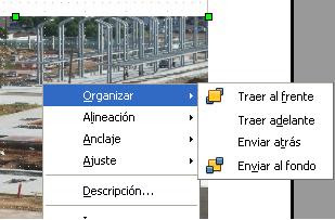 La imagen seleccionada puede estar colocarse la primera o la última de todas las superpuestas o simplemente avanzar o retroceder en el orden de superposición.